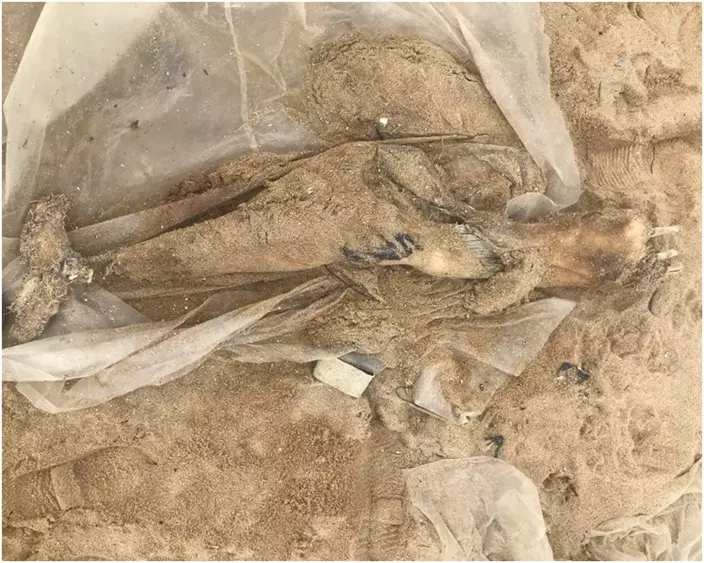 一條年幼江豚擱淺石澳後灘。