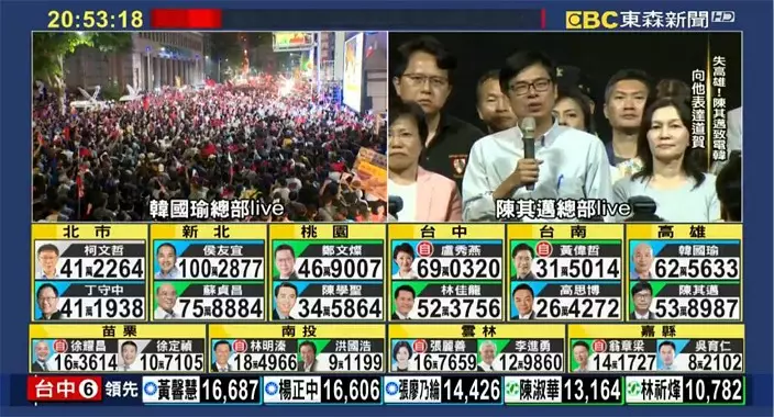 全台九合一選舉,高雄市長選戰最受矚目。現階段,國民黨的候選人韓國瑜票數領先約六萬之下,民進黨的候選人陳其邁率先出來宣布敗選。