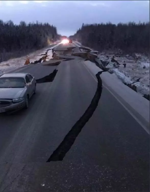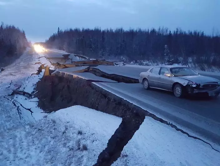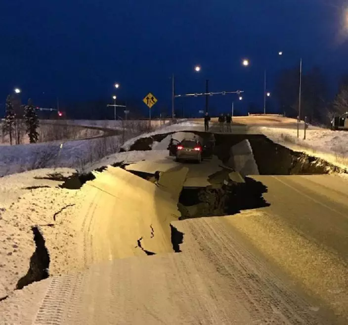 美國阿拉斯加發生黎克特制7級地震,當地部分地區停電,馬路斷裂,建築物受損,民眾慌忙避難。