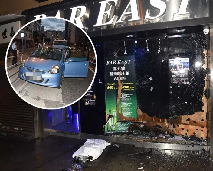 狂徒駕Jazz撞爆九龍城酒吧櫉窗。