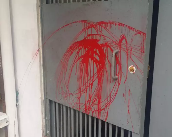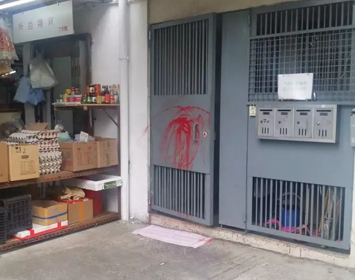 青衣一幢村屋大閘遭淋紅油,初步懷疑涉及追數。