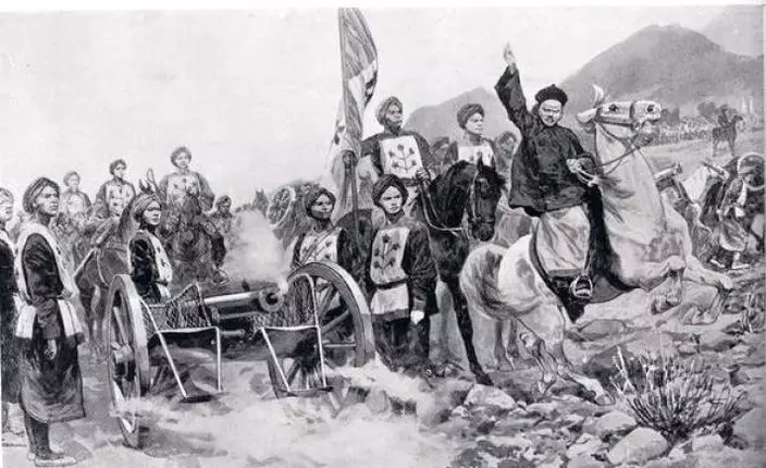 1894年11月21日,遼寧旅順口方家屯附近,日軍山炮中隊開炮 (網上圖片)