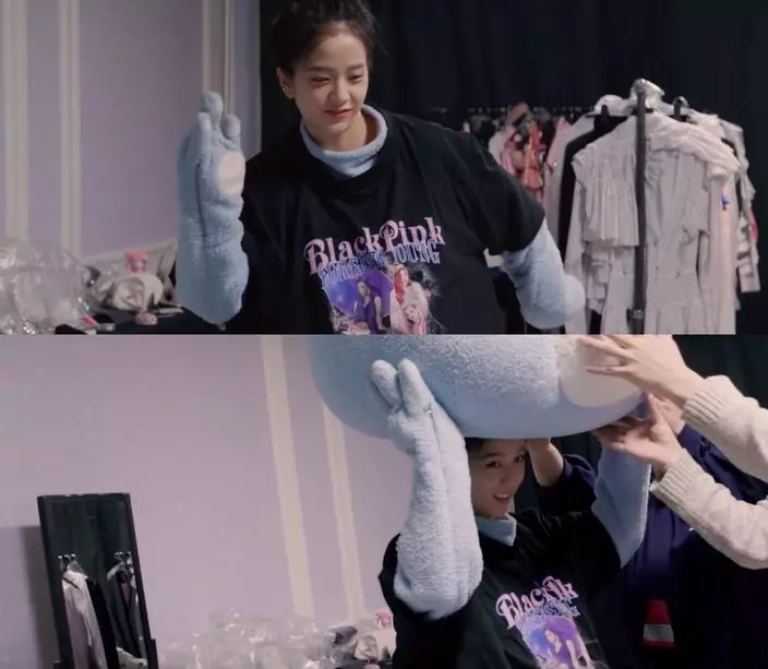 其後,Jisoo也挑戰「KRUNK熊」裝,但一開始就有點不順,因為頭套太重差點向後摔,令經理人和保安叔叔緊張到立即衝出來保護。雖然只是一直在場外走來走去,但Jisoo的走路姿勢,加上一直送飛吻,任誰看都知道那就是Jisoo啊!