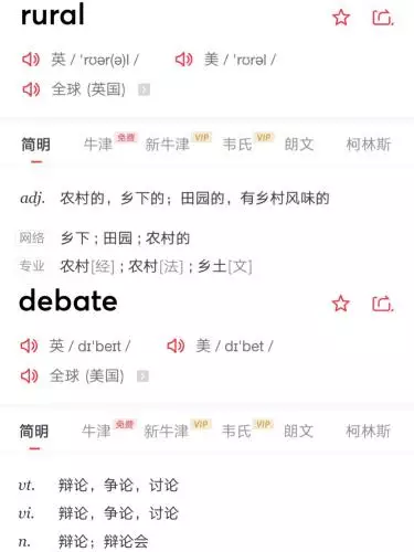 因考生吐槽而成為「熱搜」的兩個單詞,一是來自考研英語(一)里,小作文題目中的「rural」;二是來自考研英語(二)中,小作文題目里的「debate」。