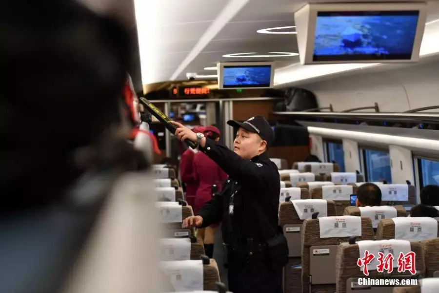 12月28日,在石家莊開往南寧東的G423次列車上,北京鐵路公安局石家莊乘警支隊乘警張弘正在檢查行李架上的行李。據了解,他的爺爺、父親都從事鐵路公安工作。從純數字的綠皮火車到「K」字頭的紅皮車,再到「T」字頭的藍皮車,「D」字頭的動車;以及目前張弘值乘的中國自主研發的標準動車組復興號高鐵列車。一家祖孫三代以一名普通乘警的身份切身經歷了中國火車40多年翻天覆地的變化。