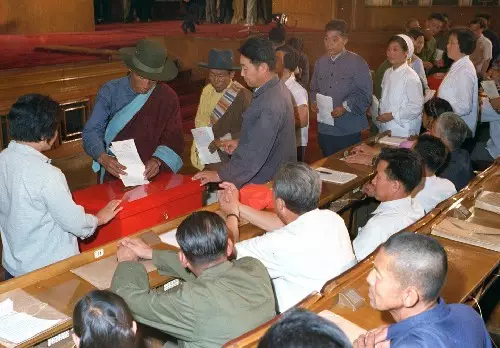1977年8月12日至18日,中國共產黨第十一次全國代表大會在北京舉行。圖為代表們投票選舉中共第十一屆中央委員會(資料圖)