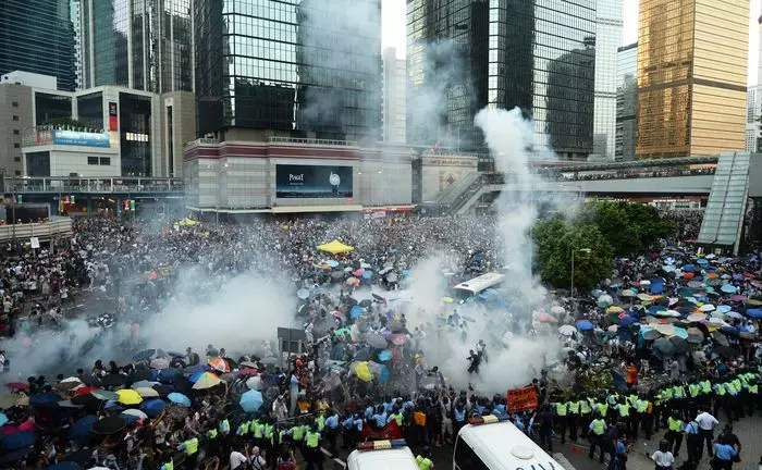 警方在9月28日,用催淚彈武力驅散示威者。資料圖片
