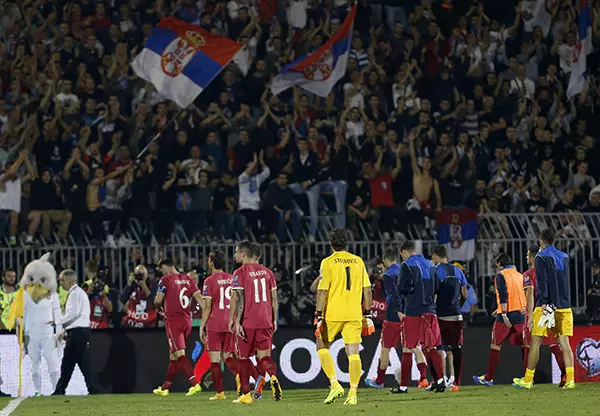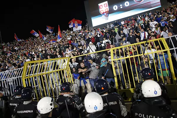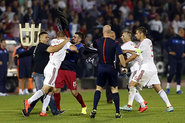 歐洲國家盃外圍賽I組賽事,塞爾維亞主場對阿爾巴尼亞,因為球場內發生騷亂而腰斬。