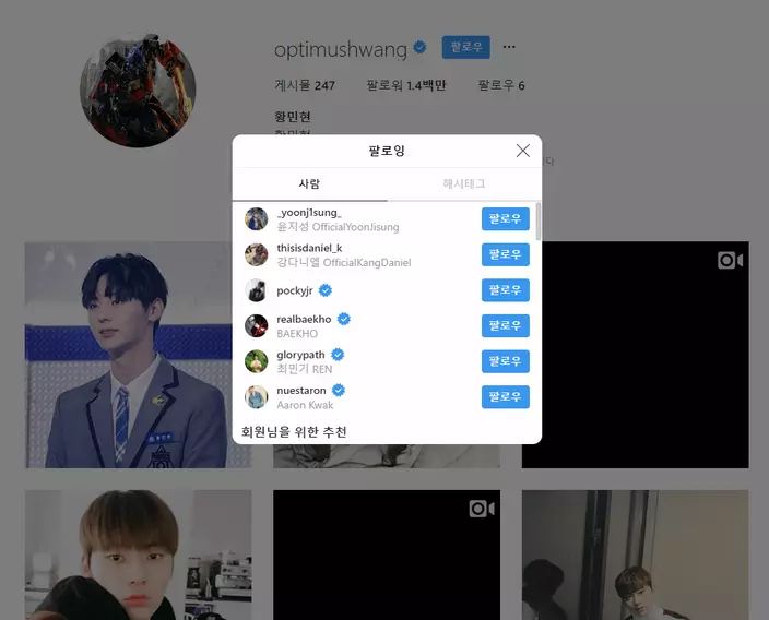 除了原來已追蹤的NU'EST成員,黃旼炫也追蹤了剛回歸Instagram的尹智聖和姜丹尼爾,就像在表示自己永遠是Wanna One一員,令Wannable十分感動。