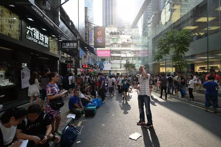 銅鑼灣蘋果專賣店外有大批人放售新iPhone。