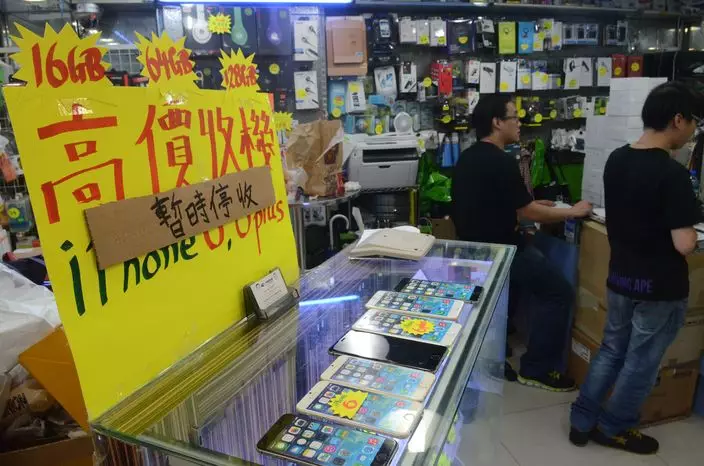 據悉,蘋果公司推出多款iPhone 6新手機,本港比內地先發售,因而掀起iPhone 6新手機炒風,最受歡迎的金色新機炒賣至每部逾二萬元。但自從蘋果宣布iPhone6本月十七日(即明天)在內地開始發售,令iPhone6炒價大跌,有炒家囤積大批「蟹貨」,紛紛割價求售,有蘋果迷伺機執平貨。