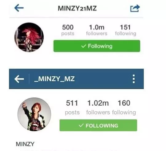 有粉絲發現,孔敏智昨日將自己Instagram上的ID名「minzy21mz」中改為「minzy_mz」,又把簡介中的「official 2NE1 minzy」中的組合名稱刪除變成了「official minzy」。
