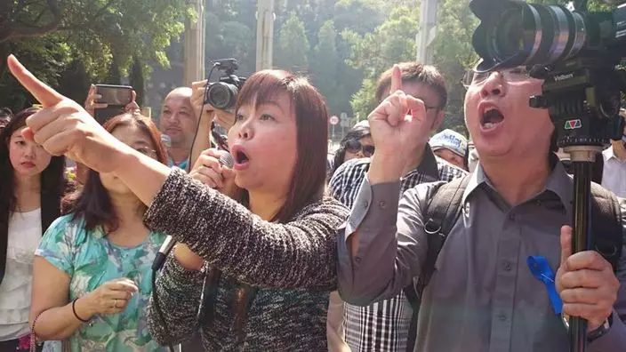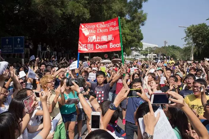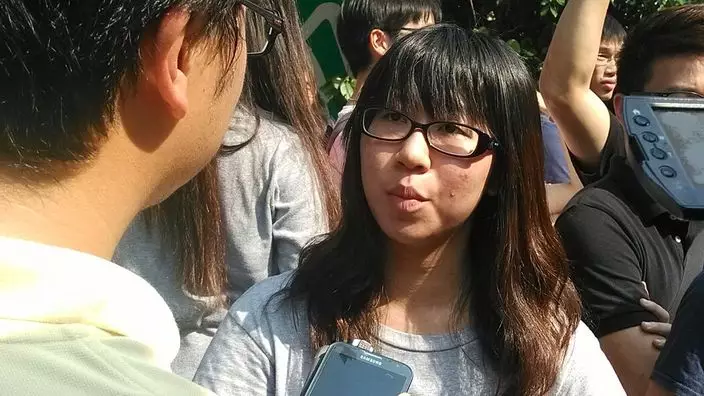 大批學生與藍絲帶對峙,高叫「不要黑警、不要藍絲。佔中問責、校監下台」口號,又舉起「警告李私煙」及「停止搗亂」指紅色示牌。李偲嫣就指藍絲帶是代表家長到中大,而非要交信予學聯。