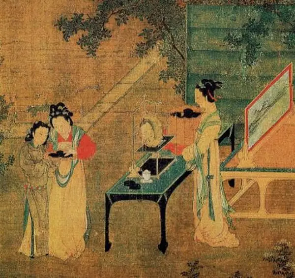 宋王詵《繡櫳曉鏡圖》可看出宋人服飾,大抵沿襲唐代 (網上圖片)