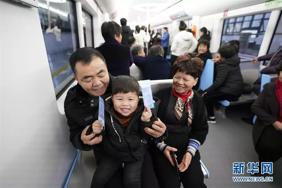 1月17日,乘客參與體驗溫州市域鐵路S1線測試運行。 由中國鐵建鐵四院總體設計的溫州市域鐵路S1線以高速動車組技術平台為基礎,是全國首條採用交流25千伏同相供電制式的軌道交通線路,預計1月底投入試運營。 新華社記者 邢廣利攝