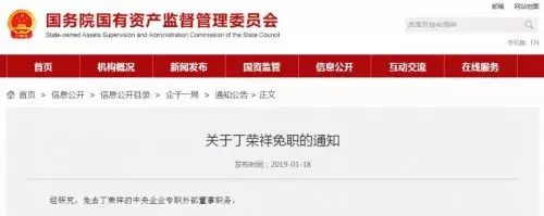 長安街知事(微信ID:Capitalnews)注意到,3天前的1月18日,國資委官網剛剛發佈丁榮祥被免職的通知,這條通知只有21字:經研究,免去丁榮祥的中央企業專職外部董事職務。