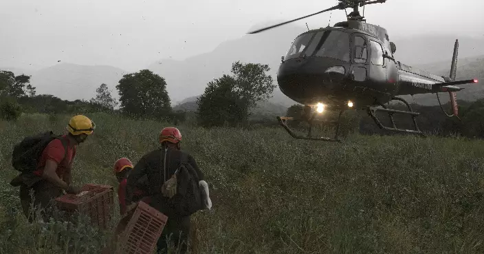 博爾索納羅乘坐直升機飛抵災區視察災情。(AP圖片)