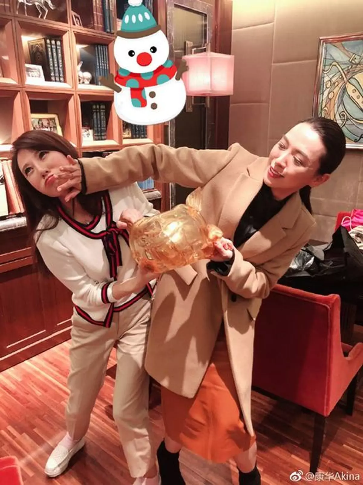 康華在微博上載多張照片,並留言:「煒哥(陳煒)Honey終於搵到金龜婿啦,等我戲裏戲外都同佢搶一餐先,原來呢個金龜婿係空心老倌來的,浪費感情!」所謂的「金龜婿」,其實是一個裝飾品,但竟惹來兩人搶奪,更大打出手,認真搞笑!看得出兩人都很想找到一個真正的金龜婿!