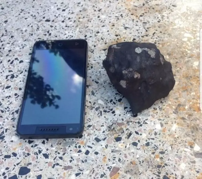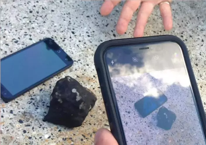 哈里斯表示,她的室友於周三上午較後時間,在車庫與房屋之間約1.2米(約4呎)的區域發現這塊石頭。她形容它呈三角形,直徑不足5厘米(約2吋),「非常非常黑」,表面有凹坑、凹槽及熔融的質感。