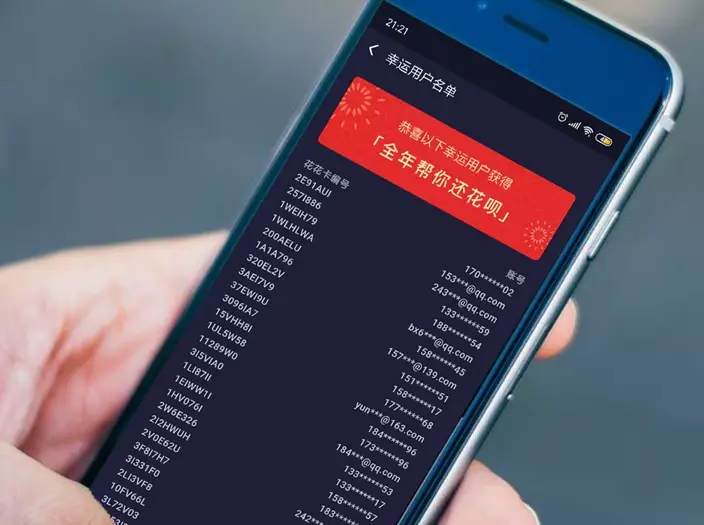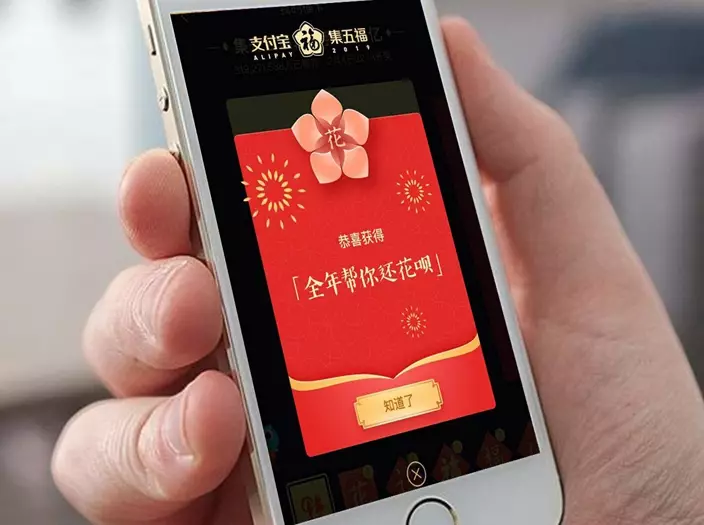 其中支付寶在年三十晚上10時18分推出集五福活動,分享5億元人民幣的現金(約5.9億港元),大多數人只分得1至2元,但亦有少數幸福兒贏得666元(約788港元),甚至有人中得3996元(約4700港元)。