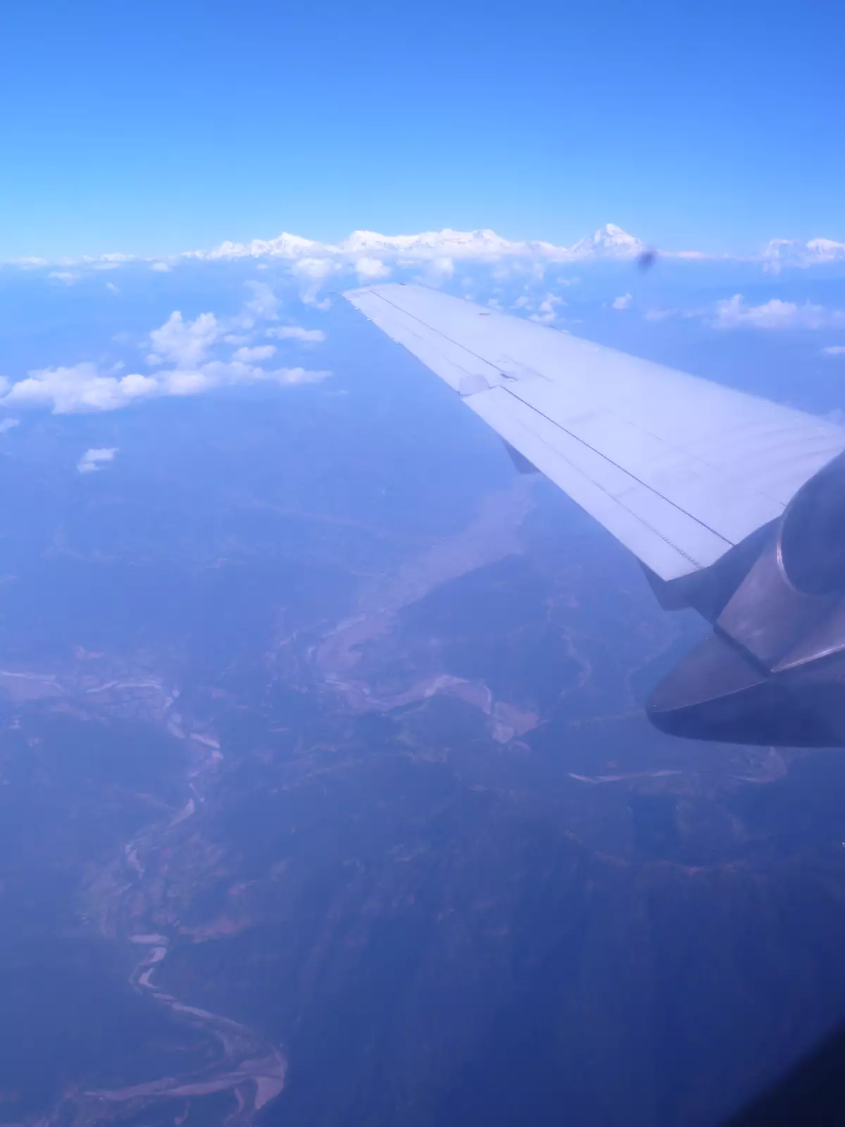 十五分鐘後,喜瑪拉亞山脈就在我的眼前,喜馬拉雅山脈位於西藏自治區與巴基斯坦、印度、尼泊爾、錫金、不丹等國邊境上,東西綿延2400多公里,南北寬約200—300公里,由幾列大致平行的山脈組成,呈向南凸出的弧形,平均海拔高達6000米,是世界上最雄偉的山脈,主峰珠穆朗馬峰海拔8848.13米,為世界第一高峰。在飛機上看,你會發現喜瑪拉亞山的山峰就和飛機在同一高度!實在太宏偉了,身為地質師的我,有幸能看到這片室外博物館,真的很開心。