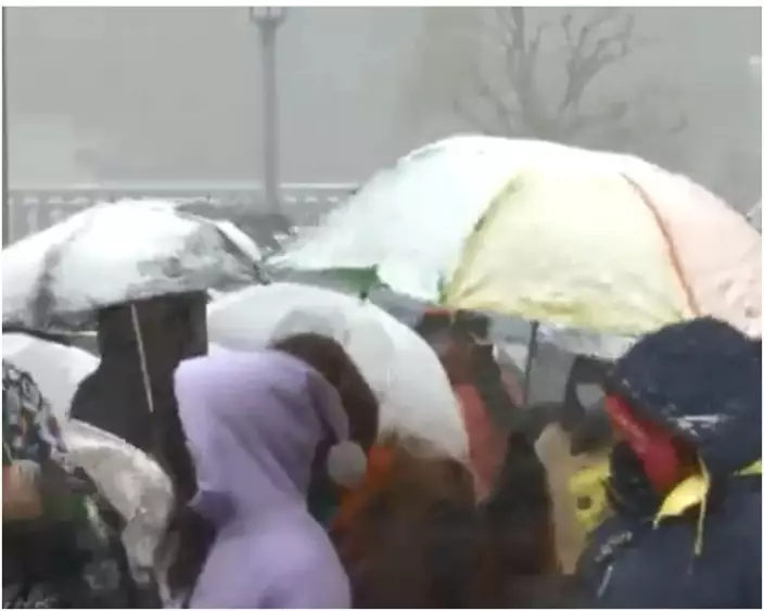 市民打開雨傘擋雪。