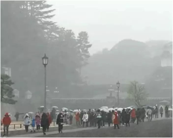 氣象廳指,東日本的上空約1500公尺處有攝氏零下6度以下的寒流侵襲平地。而伊豆群島附近形成的低氣壓往東移,造成關東地區下雪。周六東京市中心最低溫是攝氏零下0.5度。