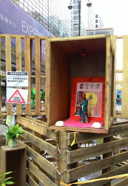 他又說,鑑於近日有外來人騷擾「關公廟」,故需要做化解。他表示,將於傍晚6時,帶同「關二哥」神像,於彌敦道佔領區走一圈;8時會有儀式,由法師進行祝禱大會,保佑佔領區人士以及消防處,因為他相信今早有消防船沉沒,與消防日前「搞關公廟」有關。