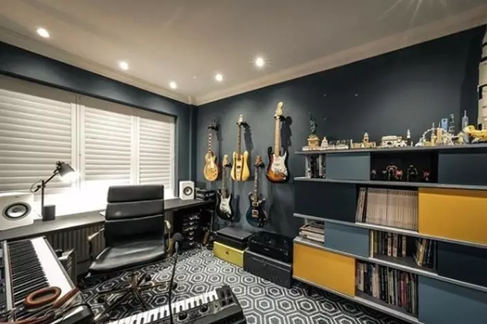 此外,身為作曲人的Mark更特別設有一個小型錄音室,音樂器材齊備,有特色結他和鋼琴等,方便他隨時在家中創作歌曲。