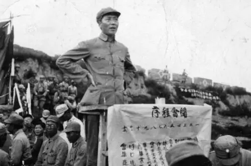 七七事變的第二天,中國共產黨中央委員會就通電全國,呼籲:「全中國的同胞們,平津危急!華北危急!中華民族危急!只有全民族實行抗戰,才是我們的出路!」圖為毛主席在延安抗日軍政大學講話,號召一致抗日。