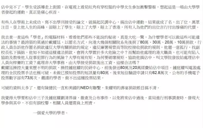 綜觀整件佔中事件,不難發現這是一個人人皆輸的遊戲,特別是CY與泛民的失分最多,後者因為支持佔中而失分,前者則反對佔中而失分,形成一個攬住死的局面。