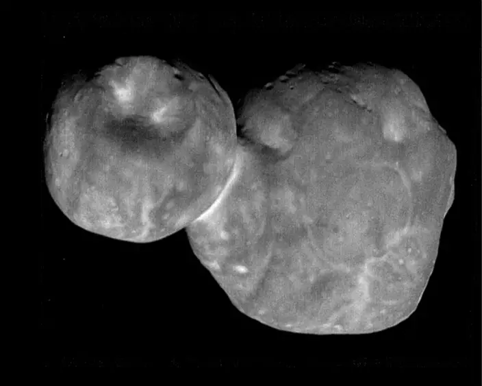 美國太空總署「新視野號」探測器傳回迄今最清晰的小行星「天涯海角」(Ultima Thule)的圖像,顯示該天體表面有許多圓形斑塊和小而深的坑。