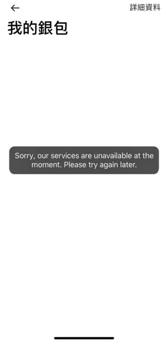 「我的銀包」的頁面中,亦只能顯示暫停服務。
