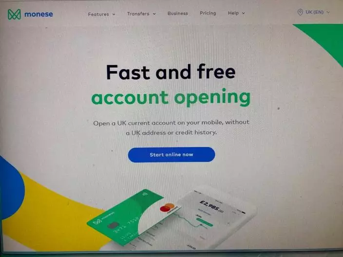 虛擬銀行十分普遍,以上是英國Monese的網頁截圖