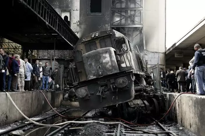 事發在當地周三早上。檢察官說,當時一列火車頭的司機由於被另一列火車阻路,在未拉手掣的情況下落車,與對方司機爭執打鬥,期間無人駕駛的火車頭,開始加速,最後撞向鋼鐵防護欄,撞到開羅中央車站副樓,釀成慘劇。