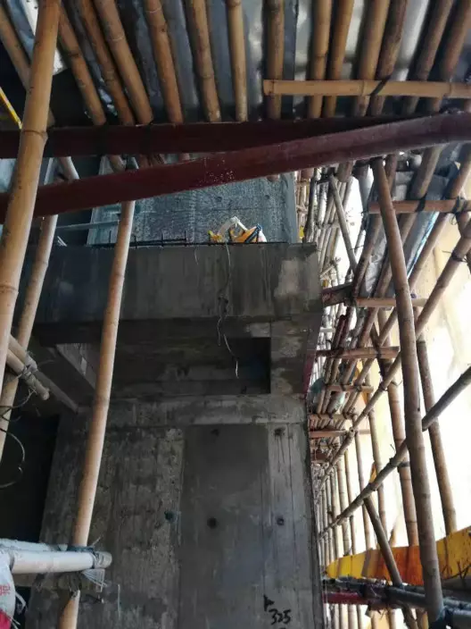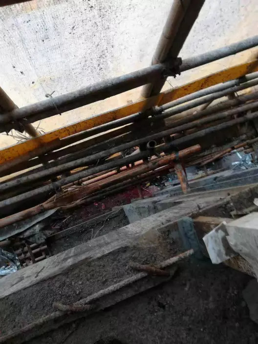 木方從高處墮下,擊中一名工人頭部。工友提供