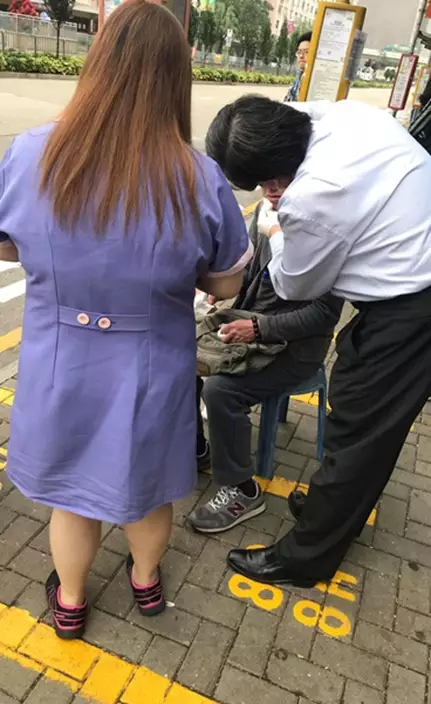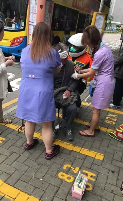 有網民今日在網上發文,指一名伯伯在巴士站不慎跌倒及流血,幸得在附近開設診所的張國明醫生及護士幫忙救治,被網民大讚。