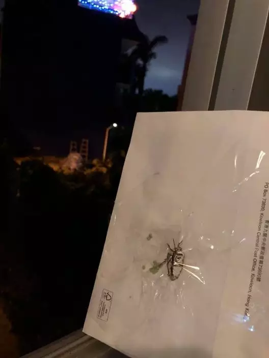 事主Ah Fizhy在facebook群組「上水粉嶺人9吹分享會」上載圖文,指發現臭屁蟲再次偷襲家中露台,估計是同一隻臭屁蟲媽媽,指「佢又嚟我露台生蛋啦。」片段可見,臭屁蟲數秒間已產出5至6粒蟲卵,更有數粒在地上。事主擔心臭屁蟲完事後會逃走,又怕蟲卵黏在地上,決定再以膠紙「封印」。
