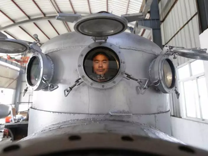 另一部潛水艇 - 「喜洋洋號」,由湖北農民譚勇花上五個月時間製造,可以下潛30米。
