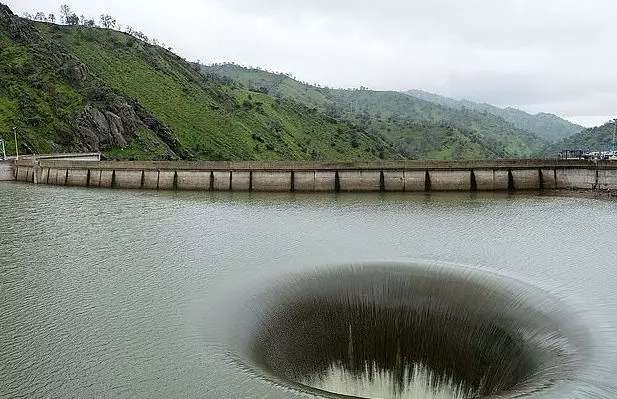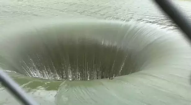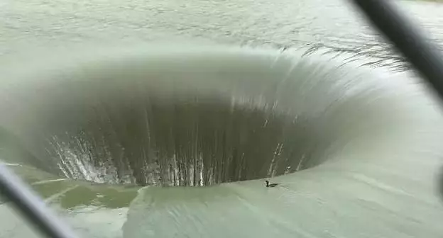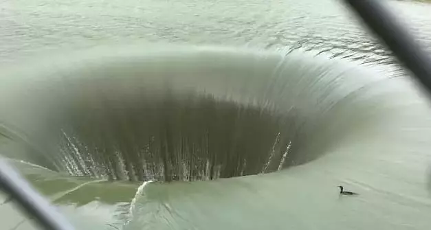 這個令人嘆為奇觀的巨型漩原來並非自然形成,實際是它是湖中一個叫「光榮洞」(Glory hole)深環形洩洪道,深約61米的洩洪道當湖中水位漲到一個點時,洪水就會經由洩洪道排走,以免湖水泛濫。