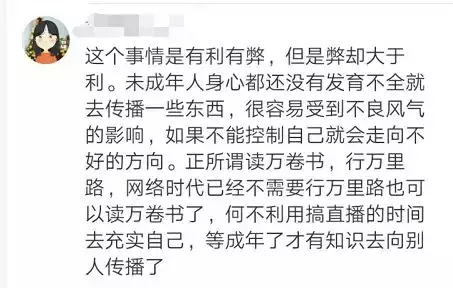 禁止未成年人擔任網路主播,這條建議你同意嗎?網友評論出奇一致!