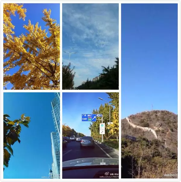 網友在微博發布照片,以「APEC藍」來形容北京晴朗天氣。(圖片來源︰新浪微博)