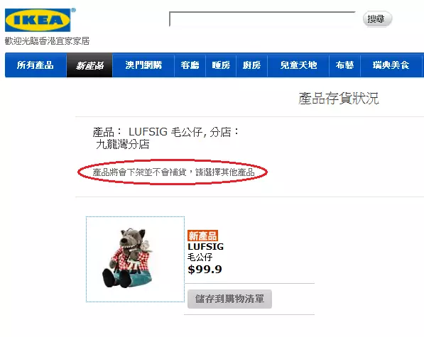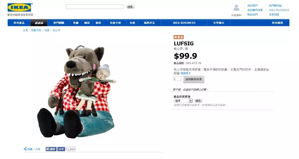 宜家傢俬的慈善公仔大野狼,今日於宜家傢俬各分店疑被搶購一空。