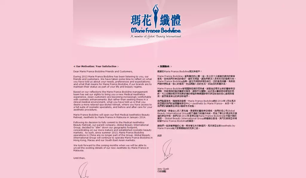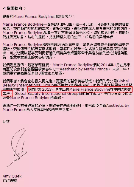 「瑪花」在香港官方網頁指,集團今年夏天已出售在內地的業務,港澳分店運作如常,在本港購買的服務不受影響。