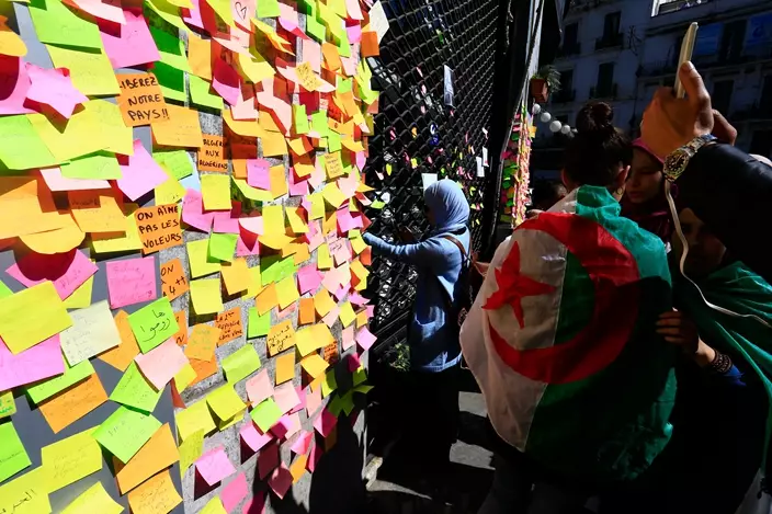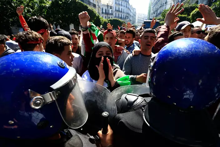 昨日繼續有人在首都阿爾及爾和國內其他城市上街示威。AP圖片