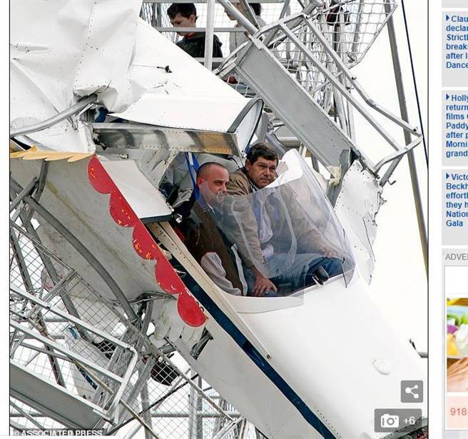 澳洲一對姐弟2011年時開心的在遊樂園搭乘摩天輪,沒想到兩人在制高點準備下轉時,一架輕型飛機卻從遠遠的地方朝他們的方向迎頭撞上,而這恐怖的畫面全被姐姐手上拿著的相機給錄了下來。事發後姐弟倆受到嚴重心裏創傷,甚至有輕生念頭。