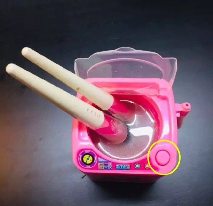 使用方法也十分簡單,只要把清潔劑倒進去,再放入化妝掃,然後按下按鈕就行了。原理和洗衣機相似,透過不斷轉動把殘餘物洗出。洗衣機甚至有排水管,可以把污水排出,十分方便。