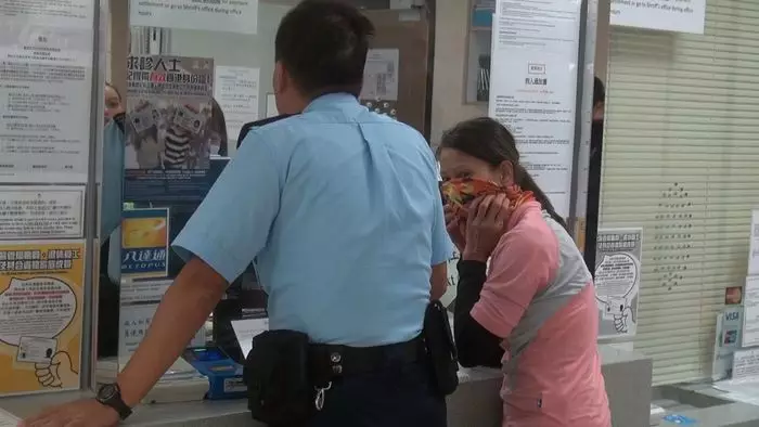 受傷女子向警員講述事發經過。