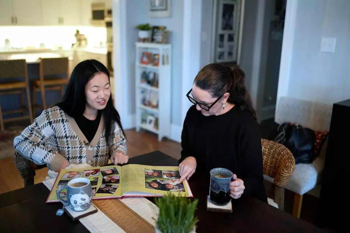祖兒艾爾伯斯(Zoie Albers)和她的養母萊斯利艾爾伯斯(Leslie Albers),右,於2026年1月17日星期六在田納西州派珀頓的家中翻看家庭照片。(美聯社圖片/George Walker IV) AP圖片