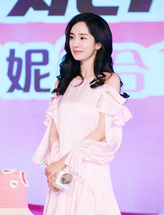 活動當天,楊冪一身襲粉色露肩裙露出筆直大長腿也是相當搶鏡,加上披肩波浪長髮,青春如少女一樣。